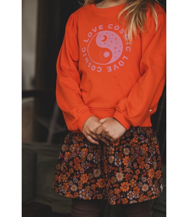 Back to the seventy's! Super fancy skirt in a beautiful baby rib quality, printed in a retro flower dessin. Elastic waistband. Lesen Sie mehr.