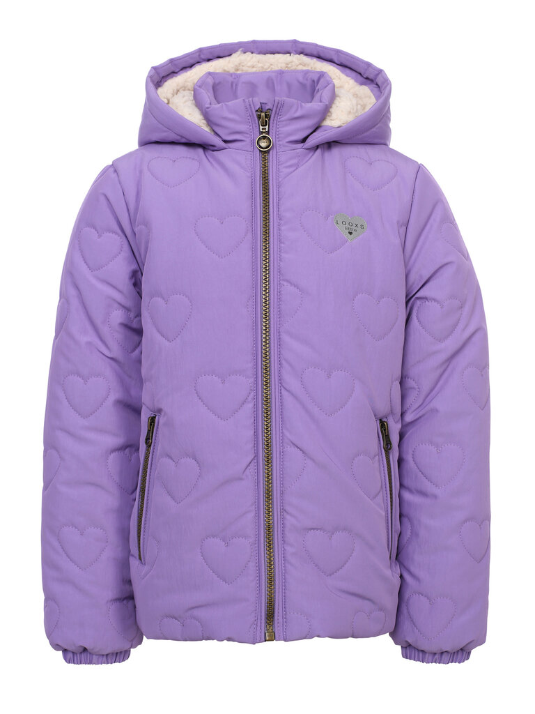 - Padded and hooded winter jacket in a fancy padded heart dessin.