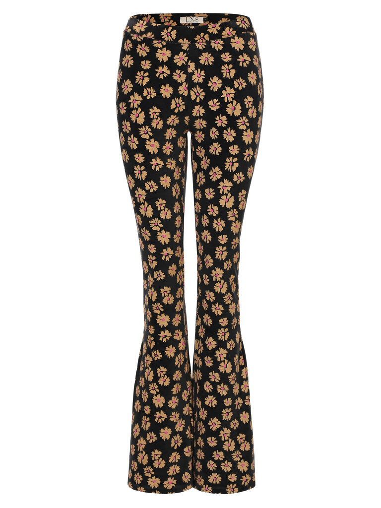 LXS Velours flared pants Winter Flower Black