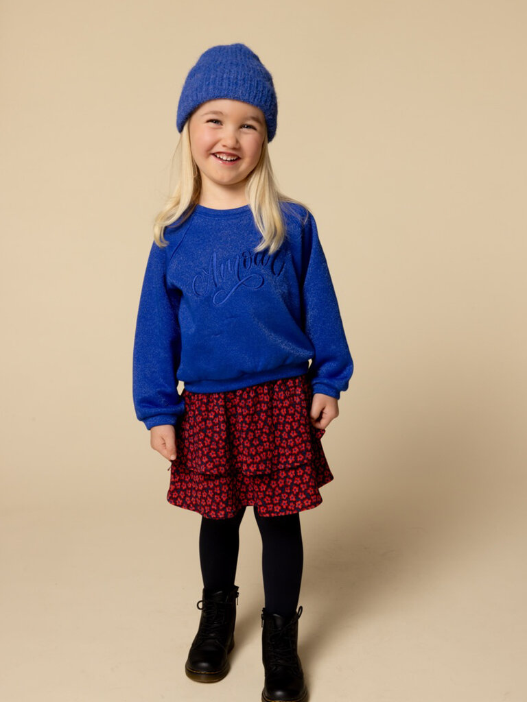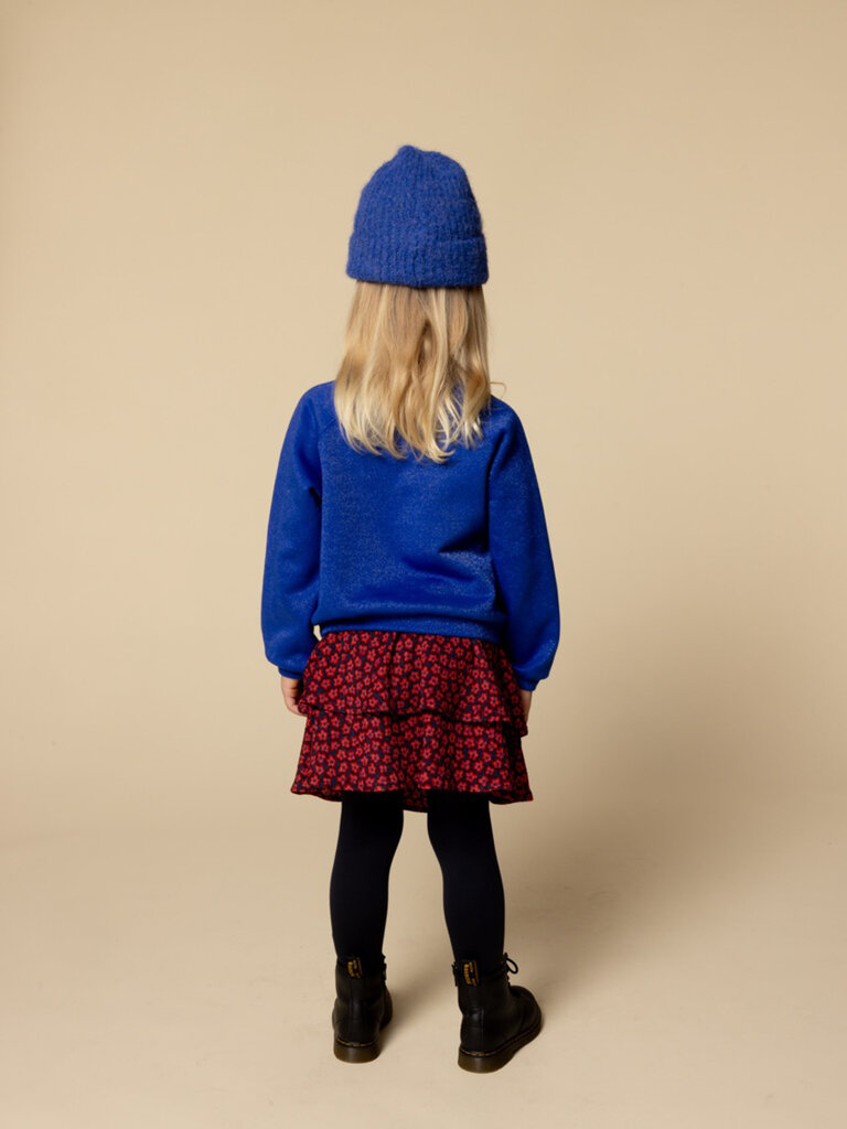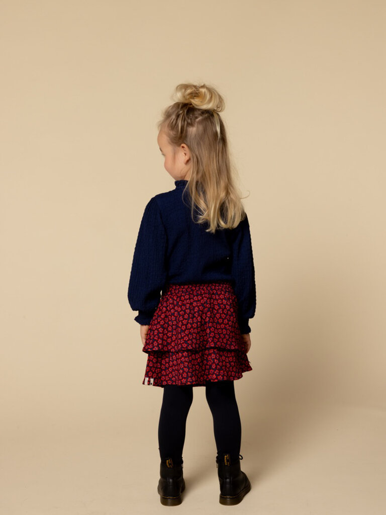 - Wide skirt in a navy fabric with a red flower dessin.
