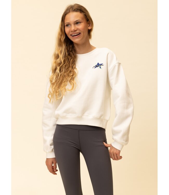 Der Pullover hat lange Ärmel, einen Rundhalsausschnitt und eine leicht lockere Passform.