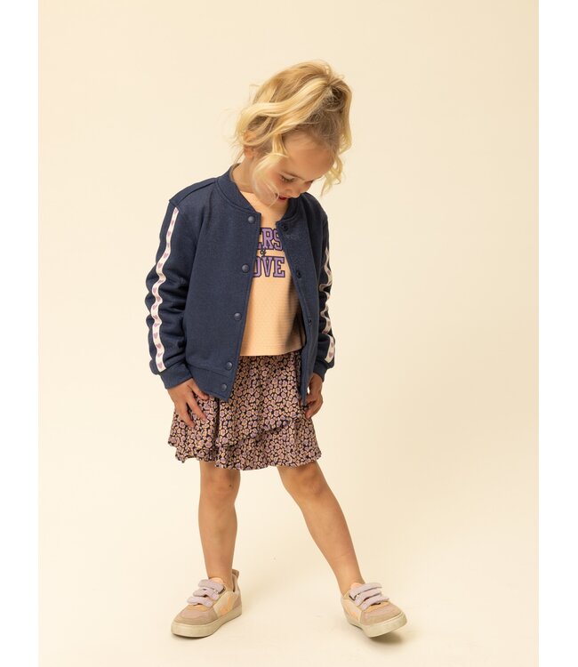 - Ausgefallener Tierprint in Flieder/Koralle auf marineblauem Grund.