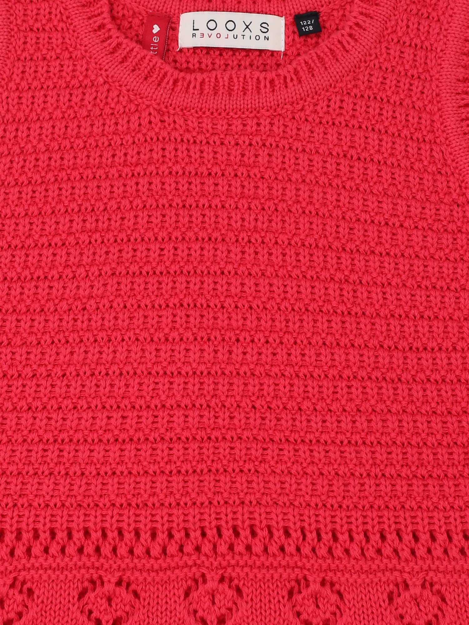 Wunderschönes, fein gestricktes Top für kleine Fashionistas! Einfarbig rot. Niedliches Strickmuster. Normale Passform. 100 % Baumwolle.