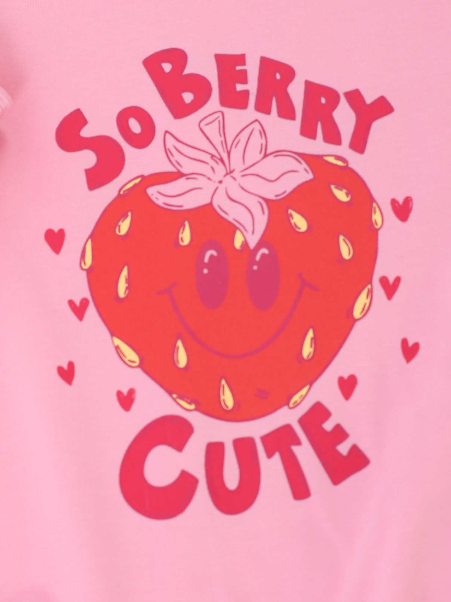 - Schlichtes Zartrosa T-shirt mit einem coolen Erdbeerprint auf der Brust.