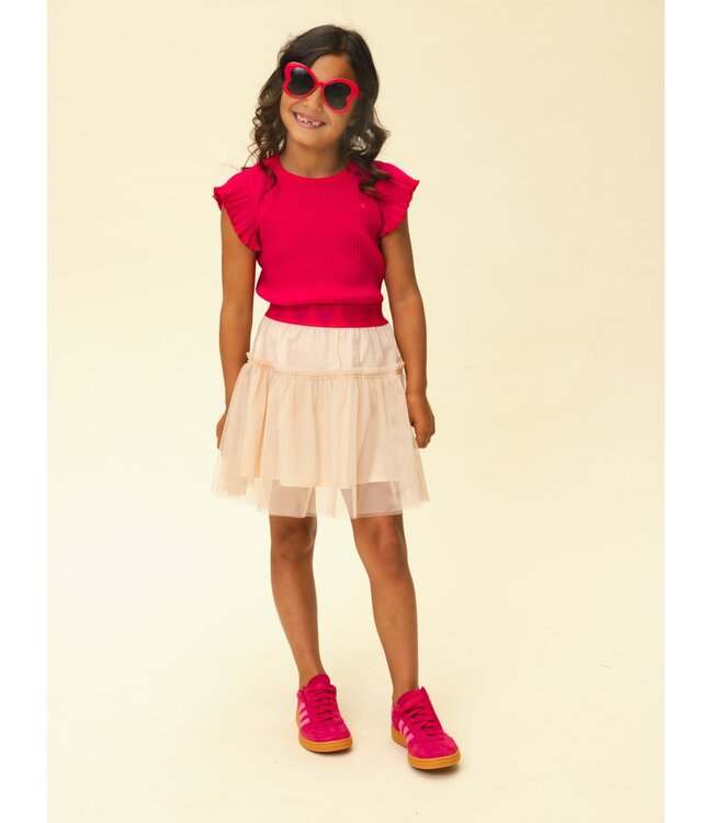 Weit geschnittener Tüllrock in einem einfarbigen Off-White-Ton.