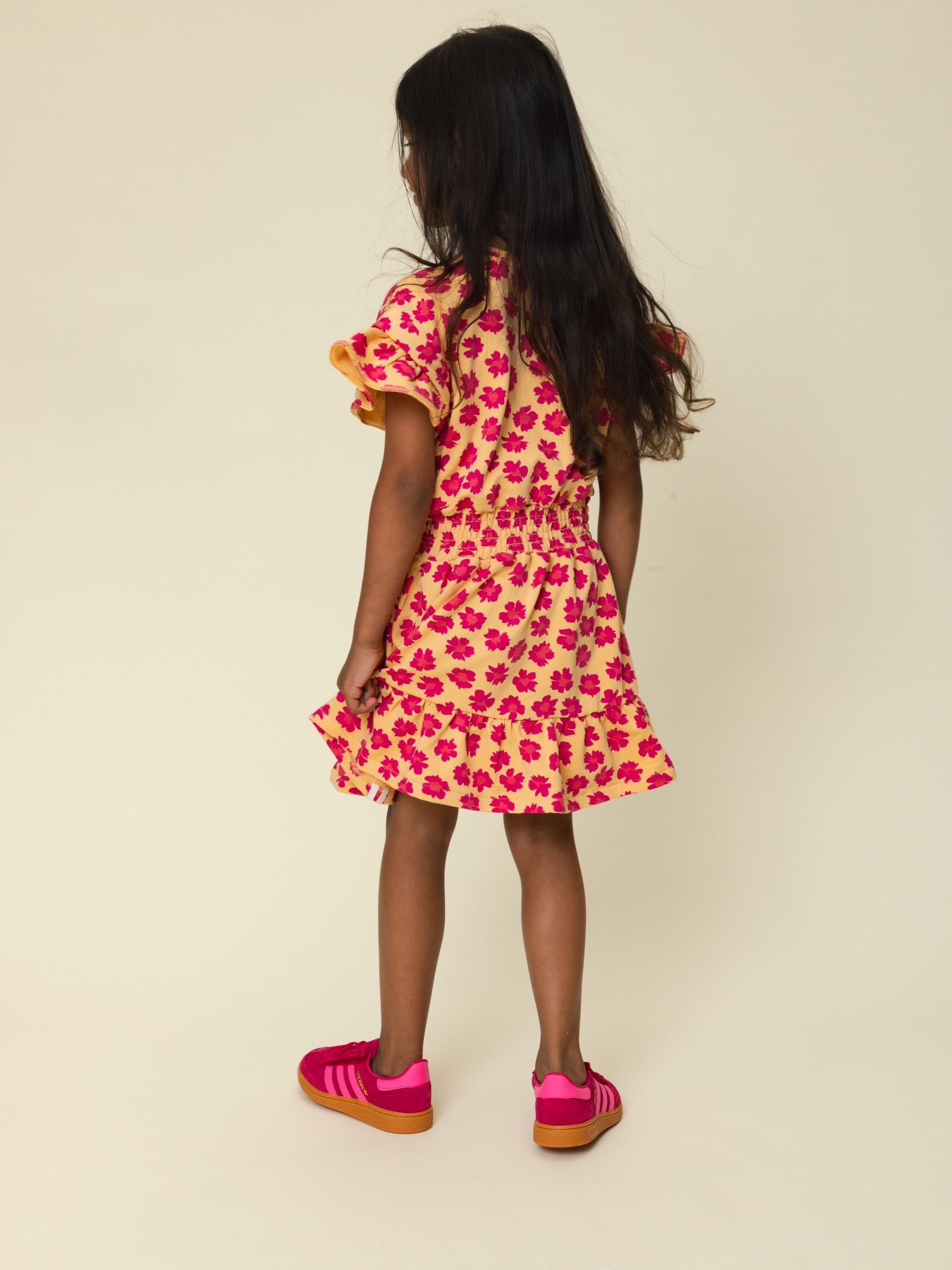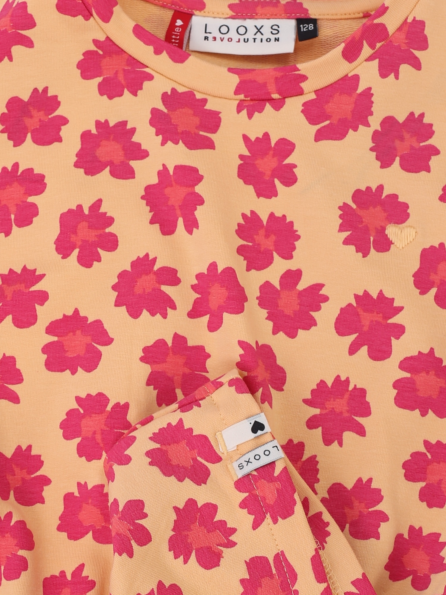 Sweatkleid Wildflower Find me in the wildflowers! Niedliches Kleid mit lässiger, lockerer Passform. Zartgelbe Grundfarbe mit einem Allover-Blumenmuster in Rosa. Wunderbar bequemer Baumwoll-Sweatjersey. Kurze, normale Länge und Rundhalsausschnitt.