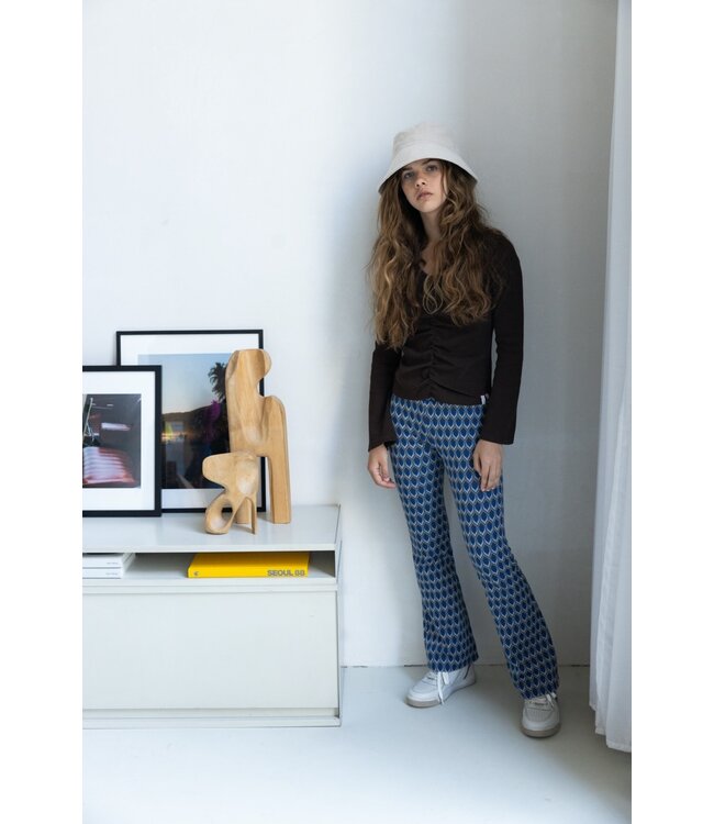 Best Basic Forever. Nice t-shirt in a fancy ribbed pattern. V-neck with ripple effect at the front made by a fine elastic band on the inside. Nice detail are the flared sleeves. Brown is the perfect match in this first delivery of LOOXS 10sixteen.