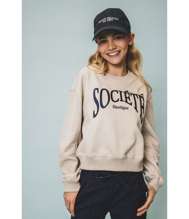 Cool sweater with a beautiful navy embroidery artwork at the chest. Little cropped fit. Loose-fit shape. Read more.