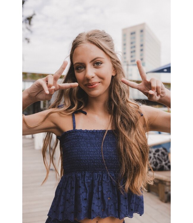 Broderie Anglaise Navy top