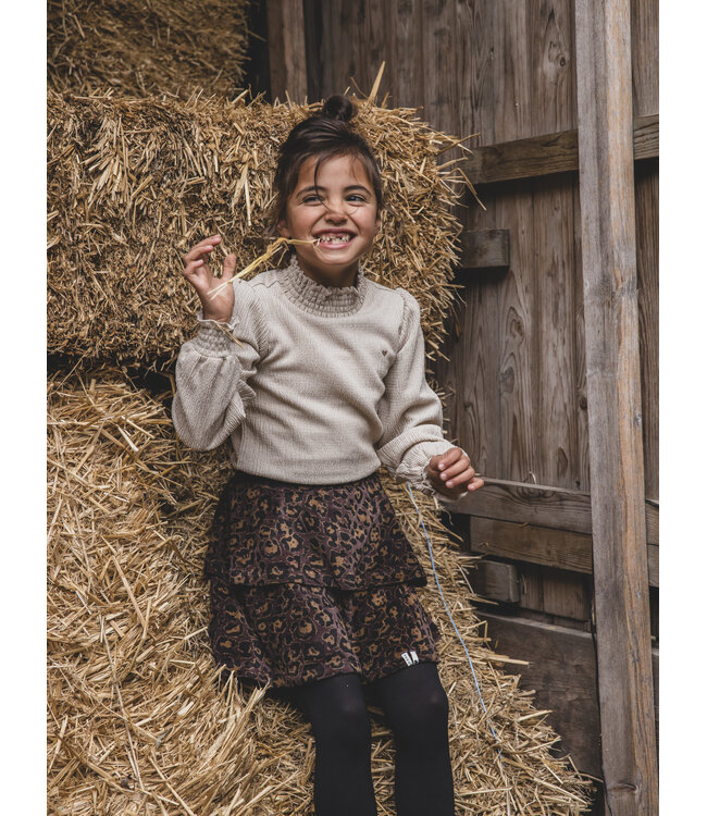 Velvet skirt Velvet Leopard Solid brown velvet skirt with an all-over ochre / black animal dessin. Mini length. Elastic waistband. Read more.