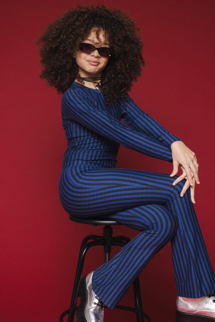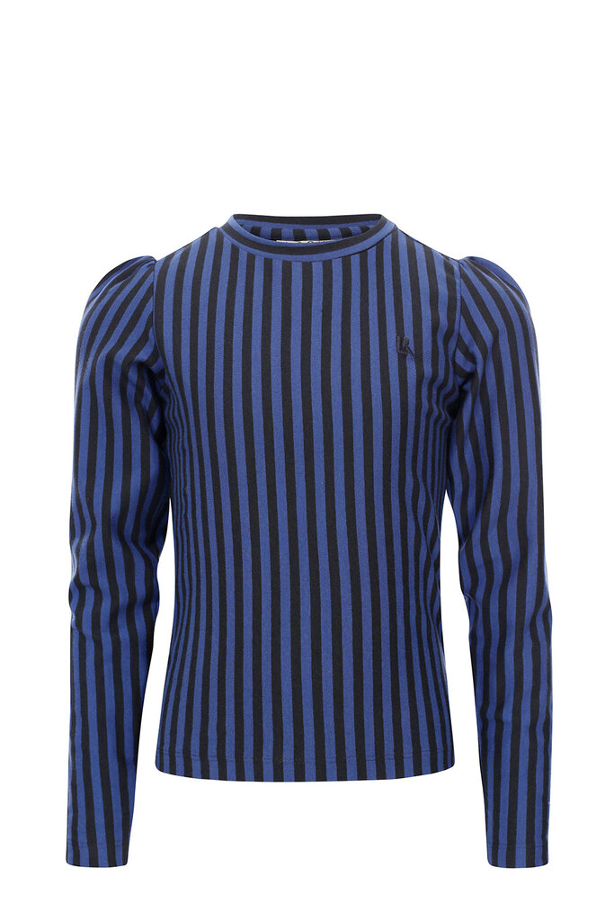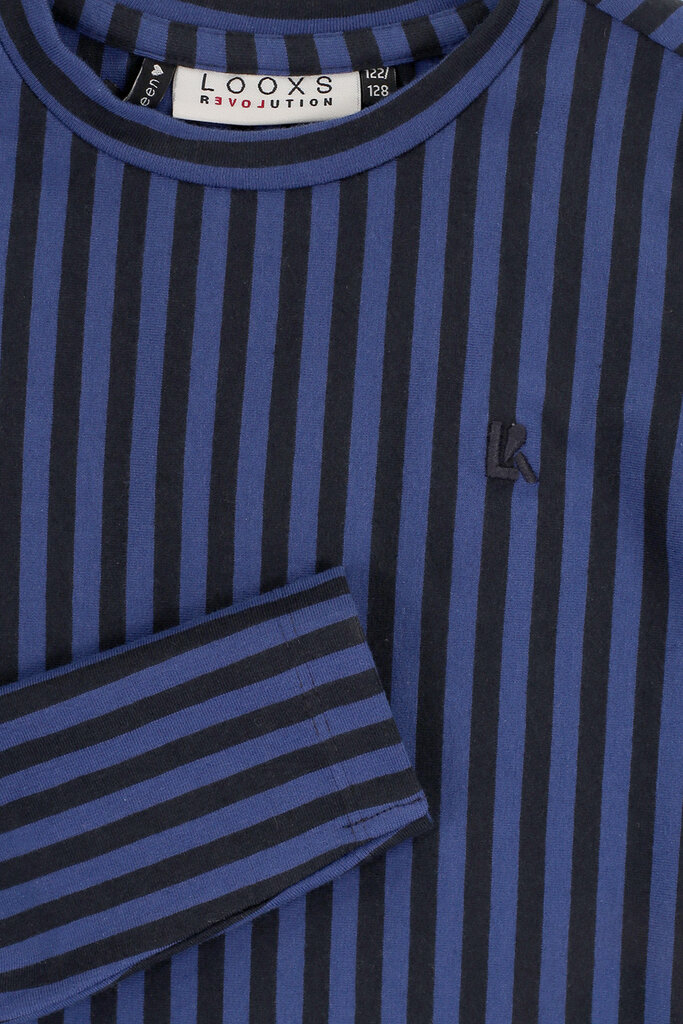 - Slim-fit top in een verticale kobalt/anthracite streep.