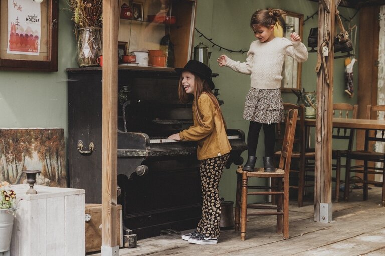 Dots to love!  Offwhite / Oker / Zwart kleuren gebruik. Comfy viscose stof. Elastische tailleband. 100% Woven twill viscose.