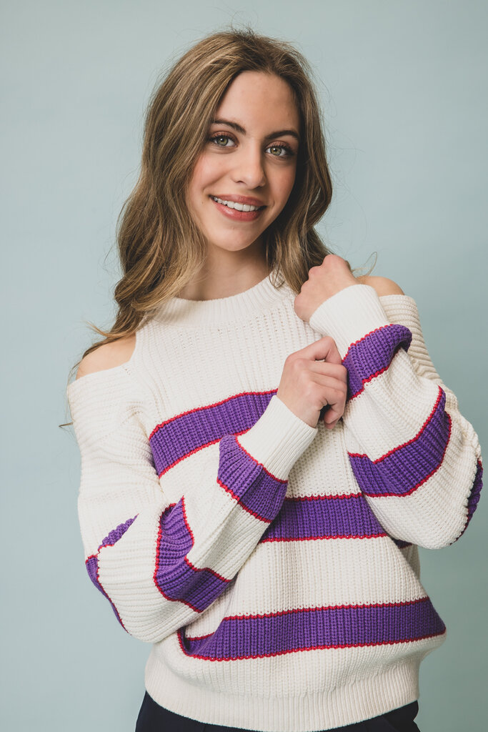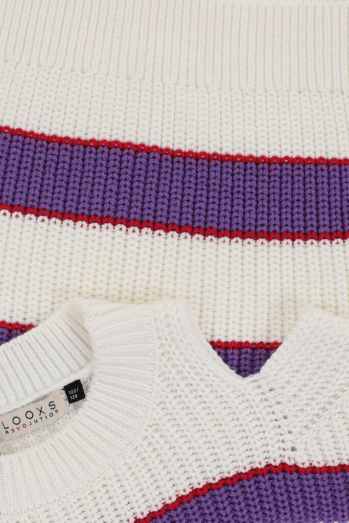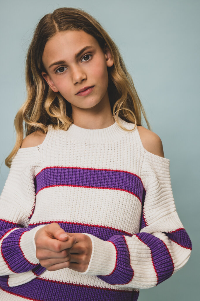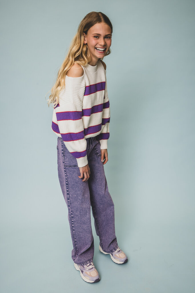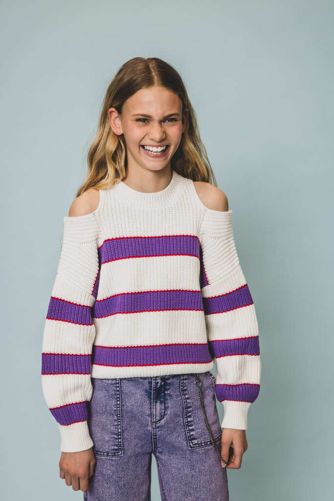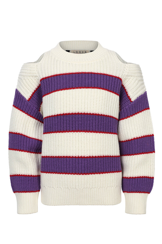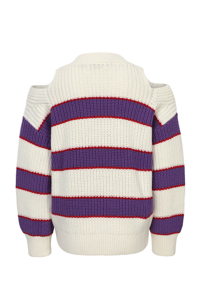 Account aanmaken- Gestreepte gebreide katoenen trui met open schouders
