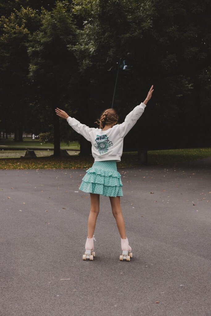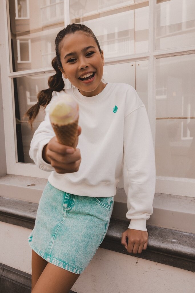 - Zomers wit met print in matching kleuren van deze eerste drop.