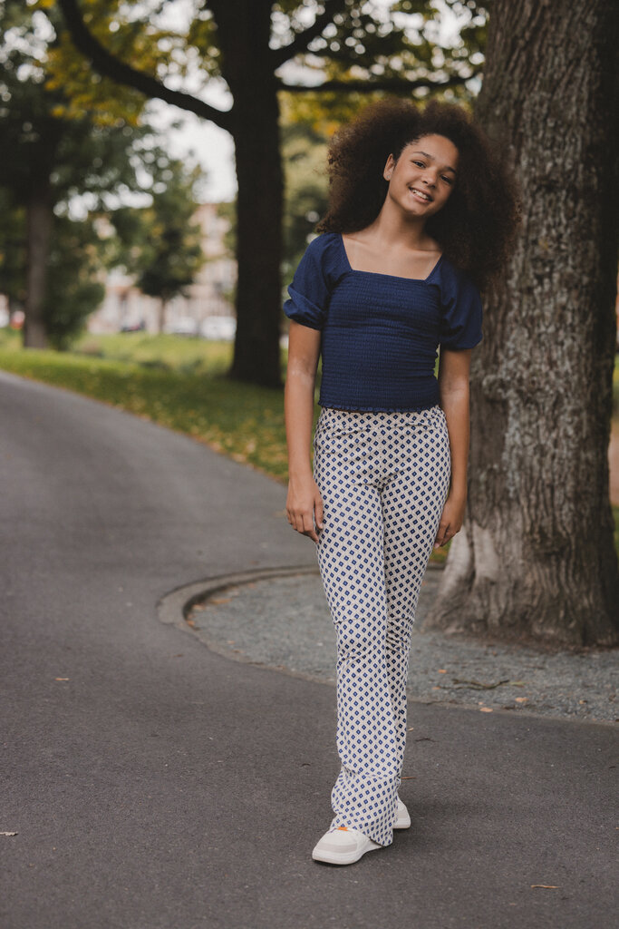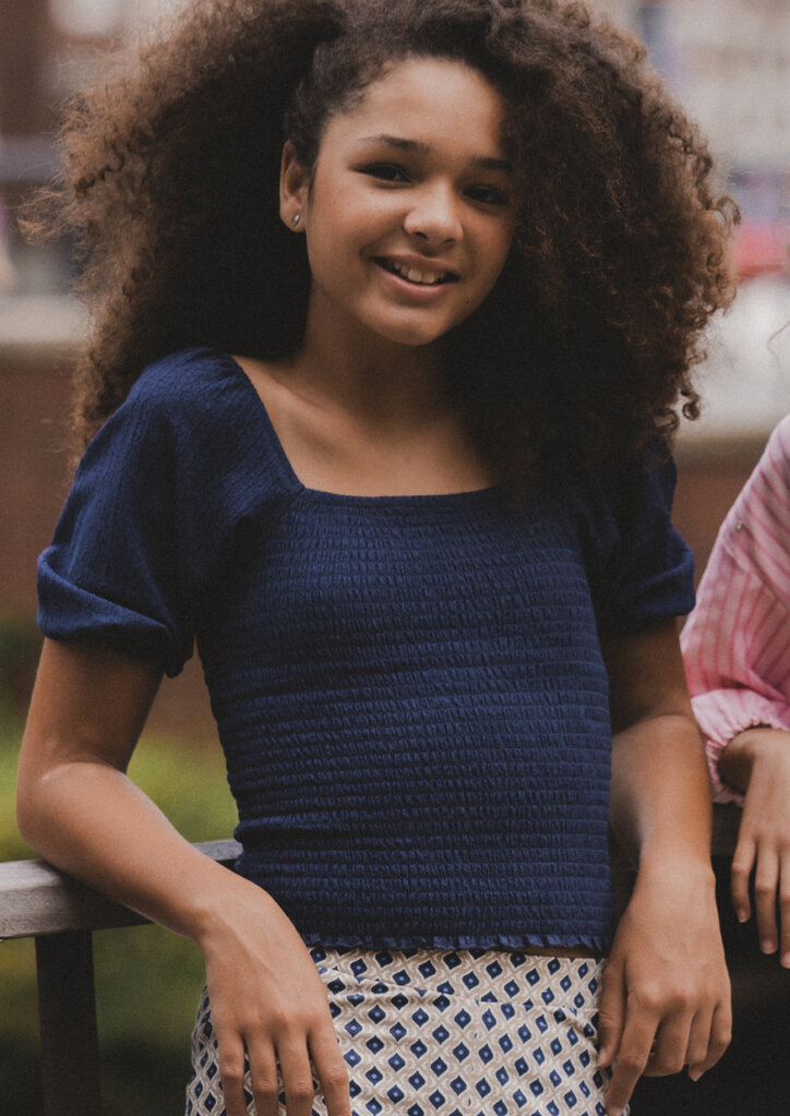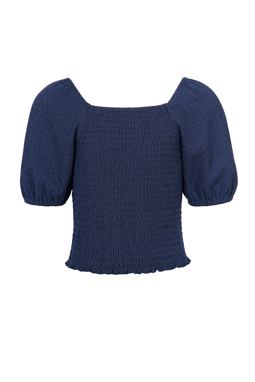 - Fancy Cropped top in een navy stof met een struktuurtje erin.