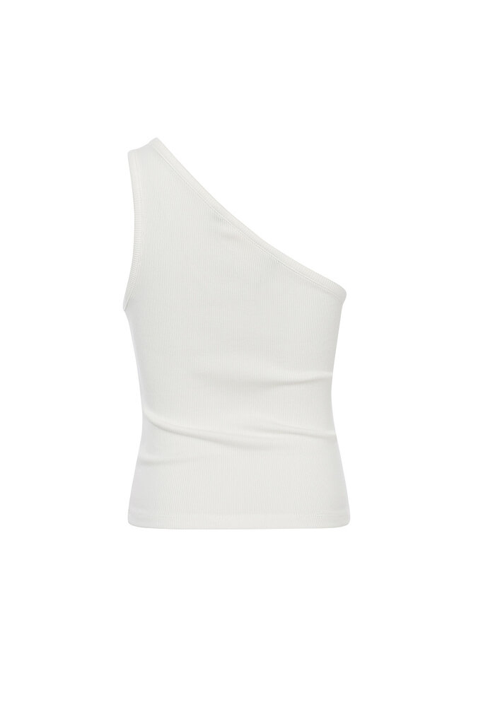 On trend! One shoulder top in mooie offwhite ribjersey. Perfecte fit. Leuke diamant steentjes als fancy detail. Slanke fit.