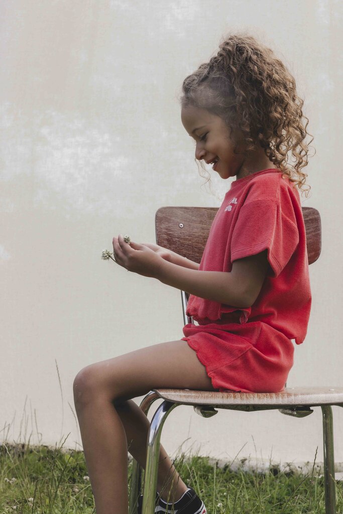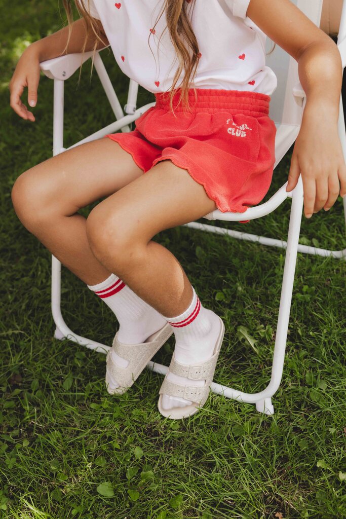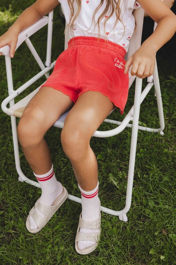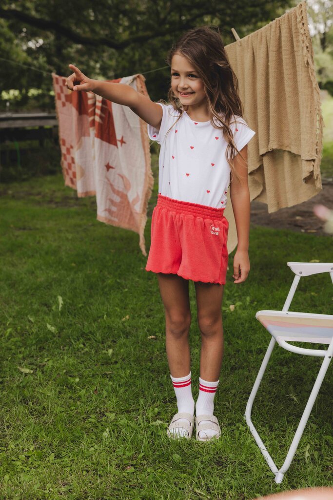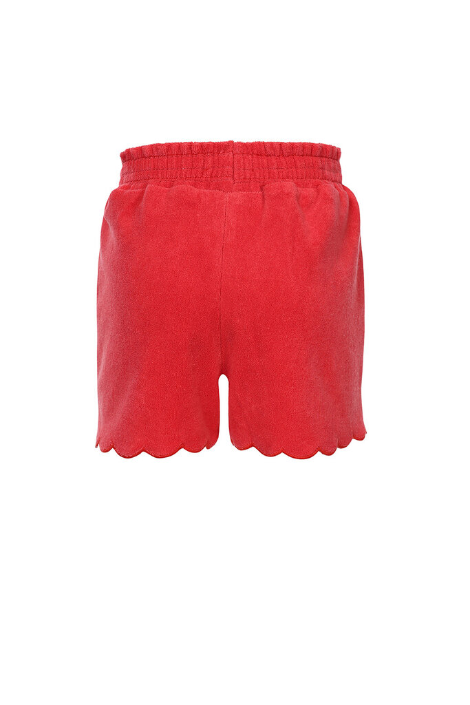 - Wat een leuk zomers wijd shortje in rode velvet badstof.