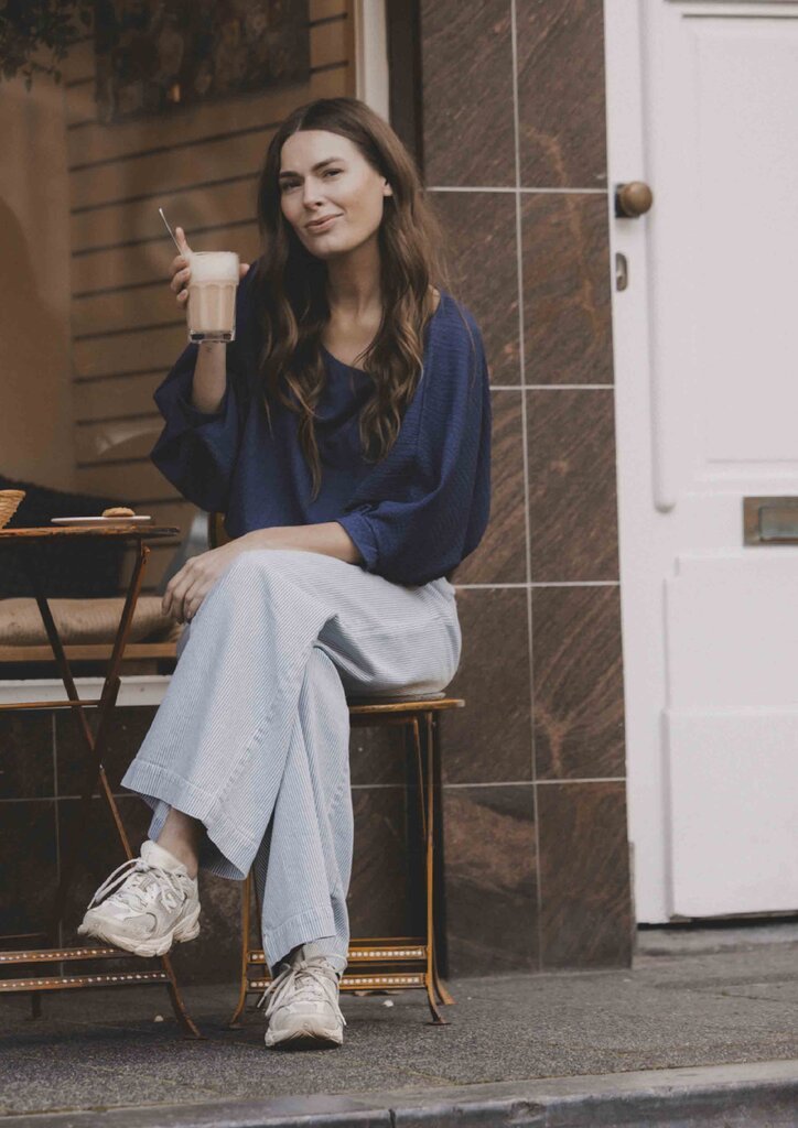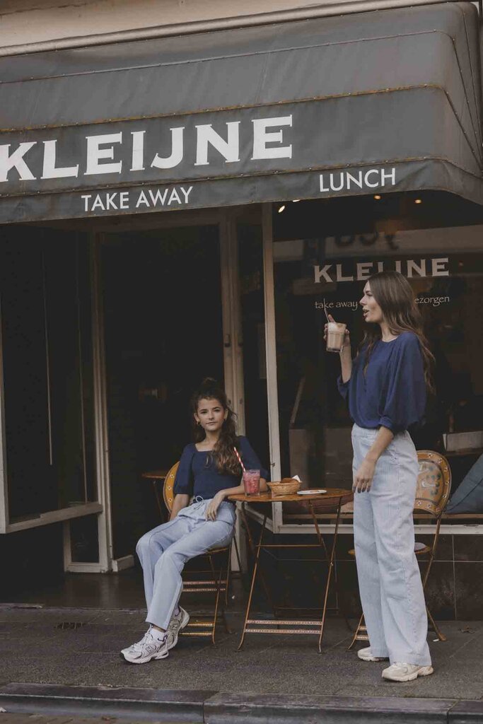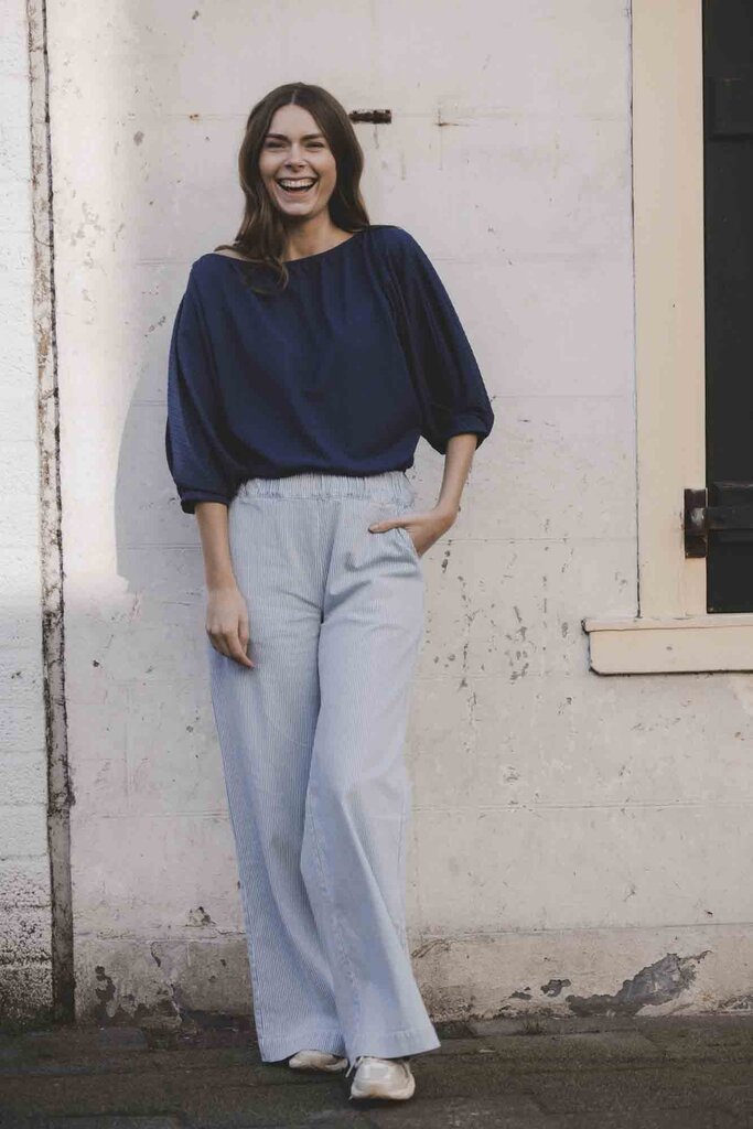 - Leuk detail zijn de wijde vleermuis 3/4 mouwen.