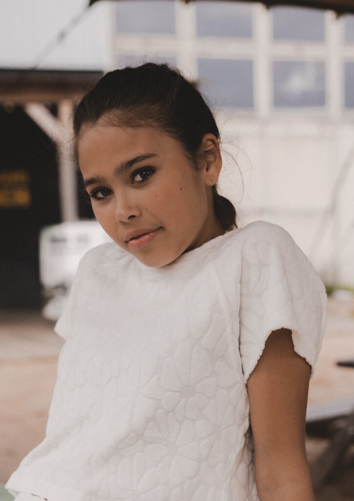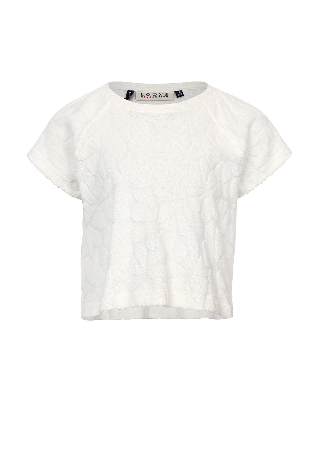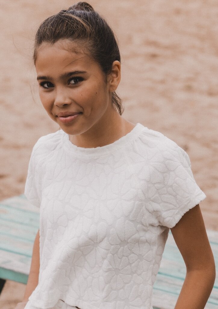 - Deze katoenen badstof top met een geschoren flower dessin.