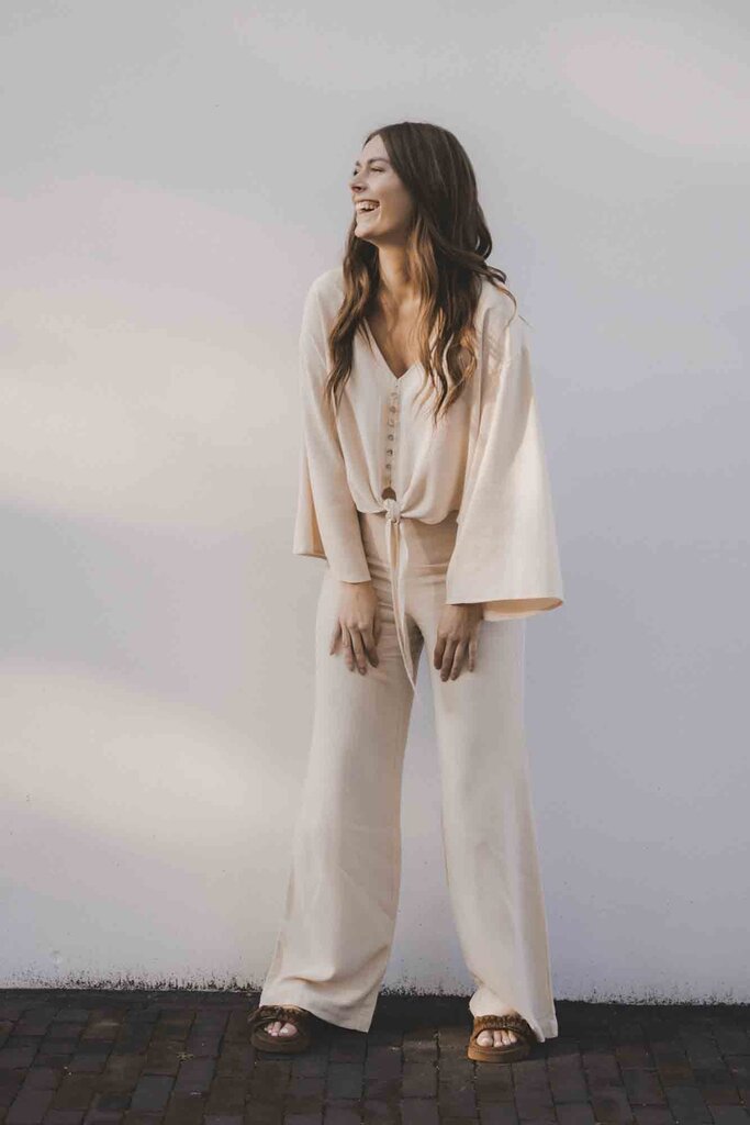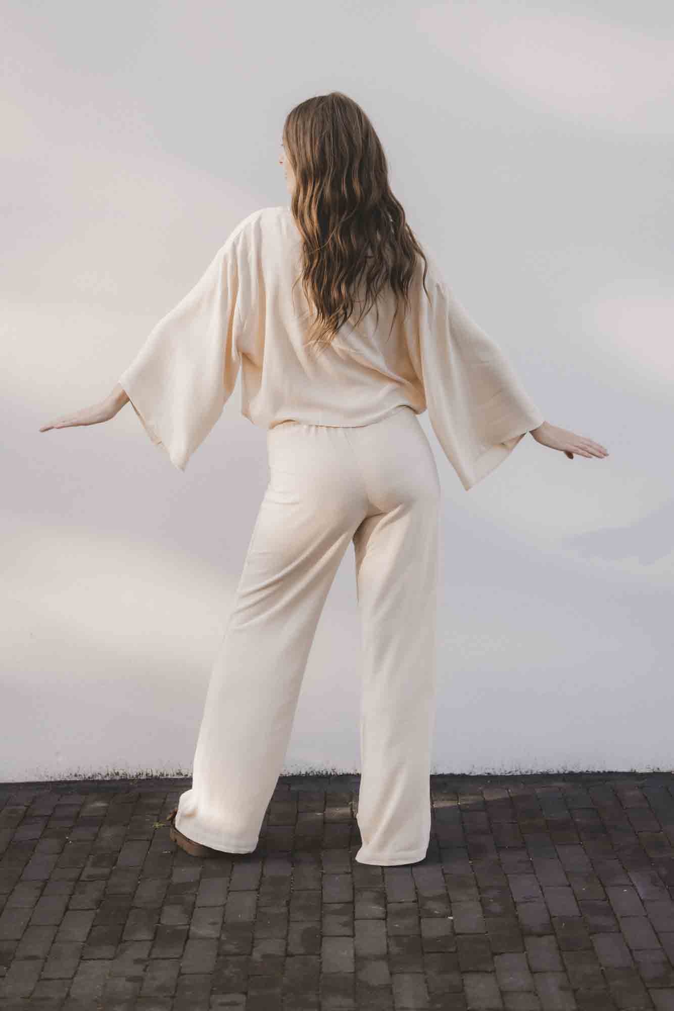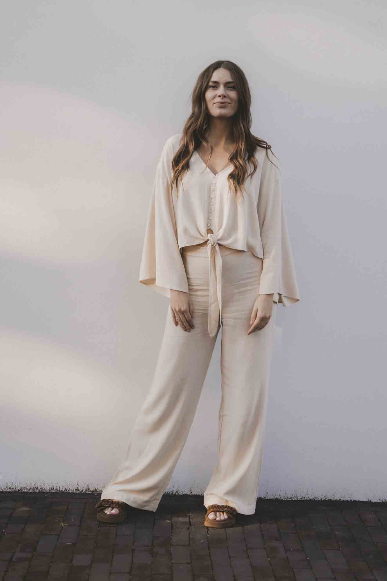 - Leuke details zoals de extra wijde mouwen en de strik sluiting.