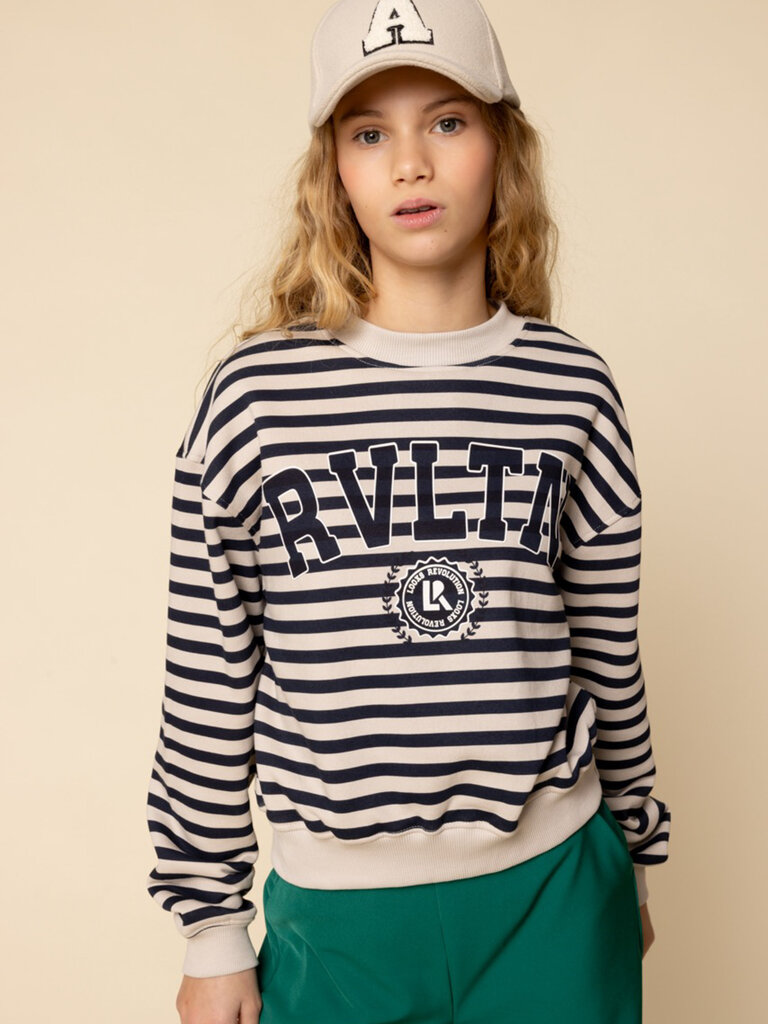 This classic stripe is easy to mix and match. Coole gestreepte sweater met een leuke, grote logo print! Heerlijke comfy sweat kwaliteit met een zachte brush aan de binnenkant. Sweater heeft lange mouwen, ronde hals en een normal fit.