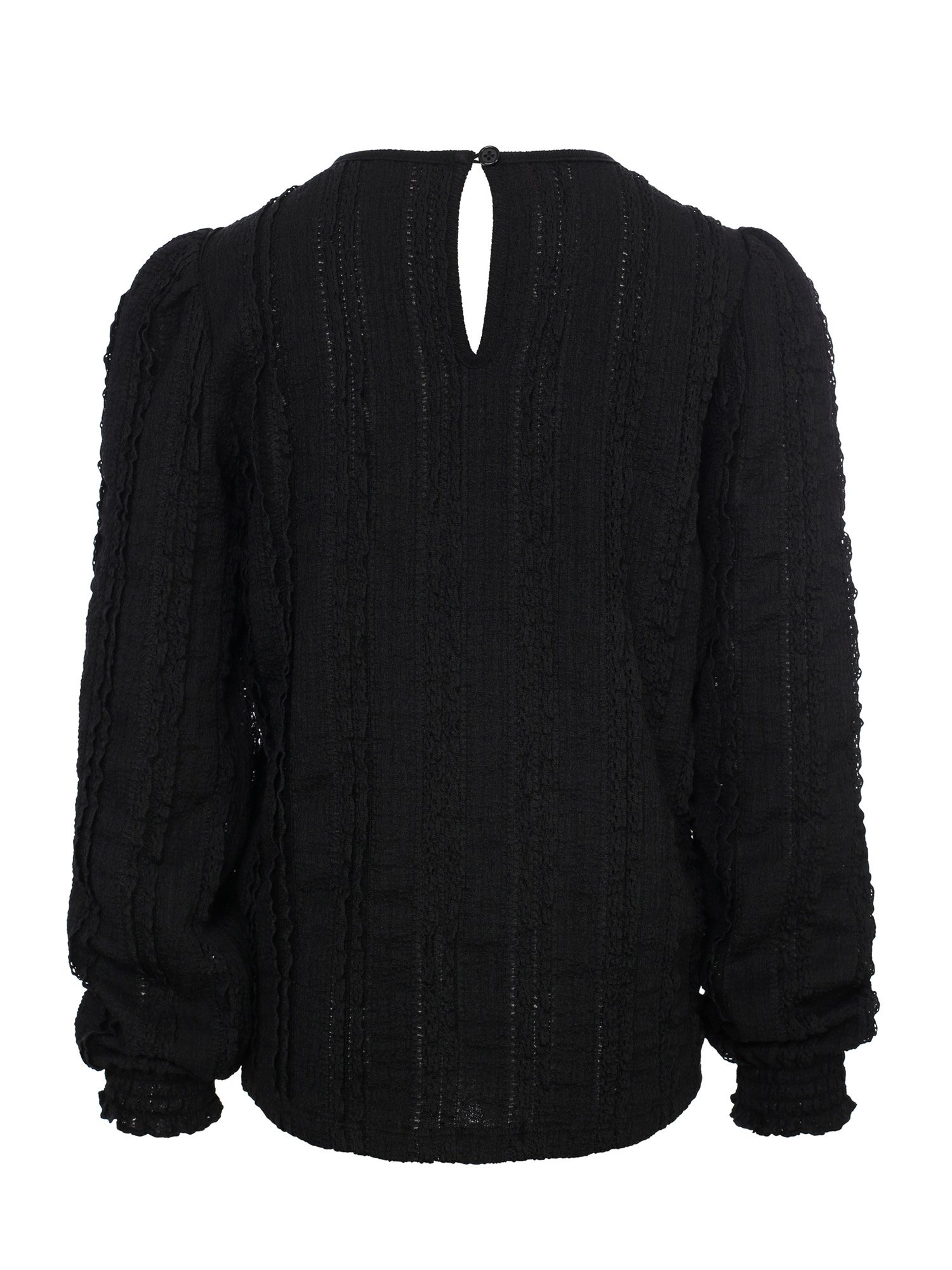 Fancy uni kanten crêpe top in een antra kleur. Stylish kledingstuk in je nieuwe garderobe daar je het met alles kan combineren. Sluit in de nek met een knoopje. Matching geborduurd hartje op de borst. Gesmockte uiteindes bij de mouwtjes.
