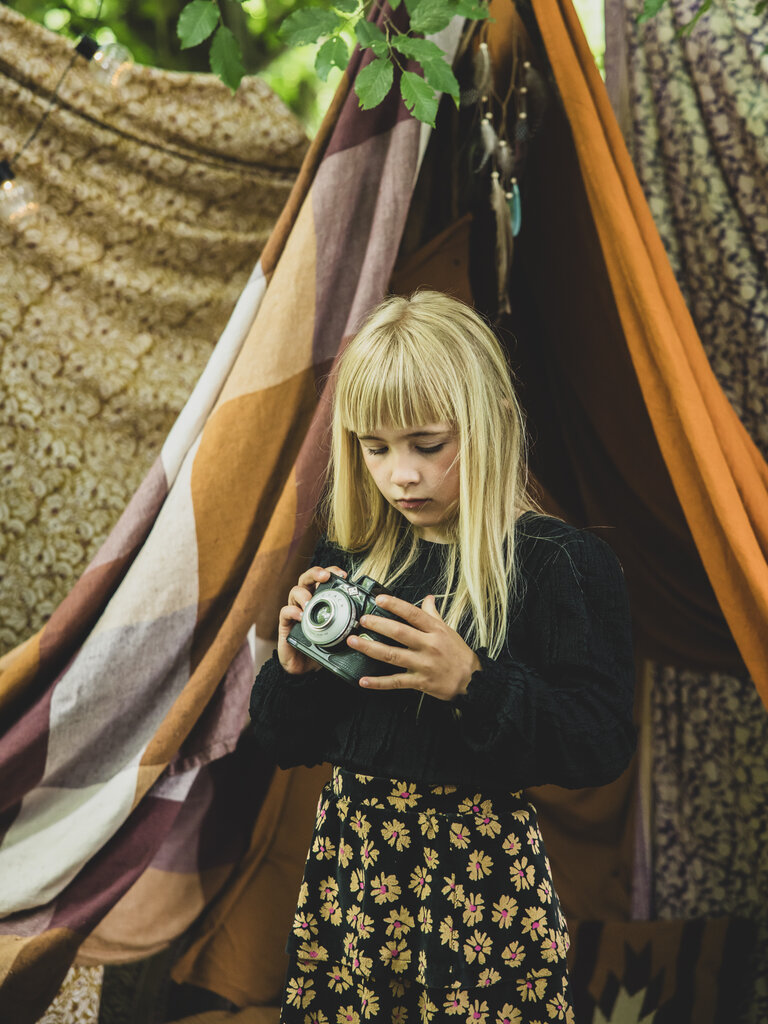 • ronde hals en sluit in de nek met een knoopje.