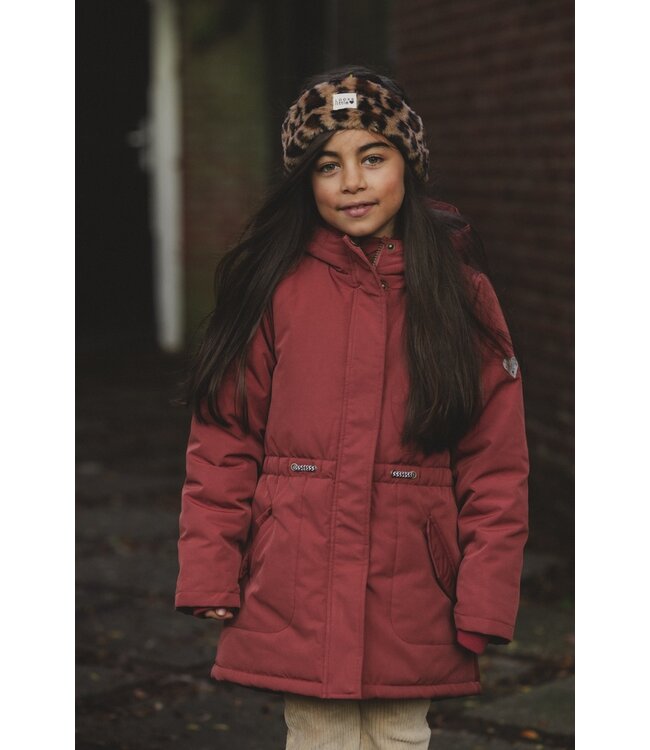 Mooie winterjas in een warme uni Brick kleur.