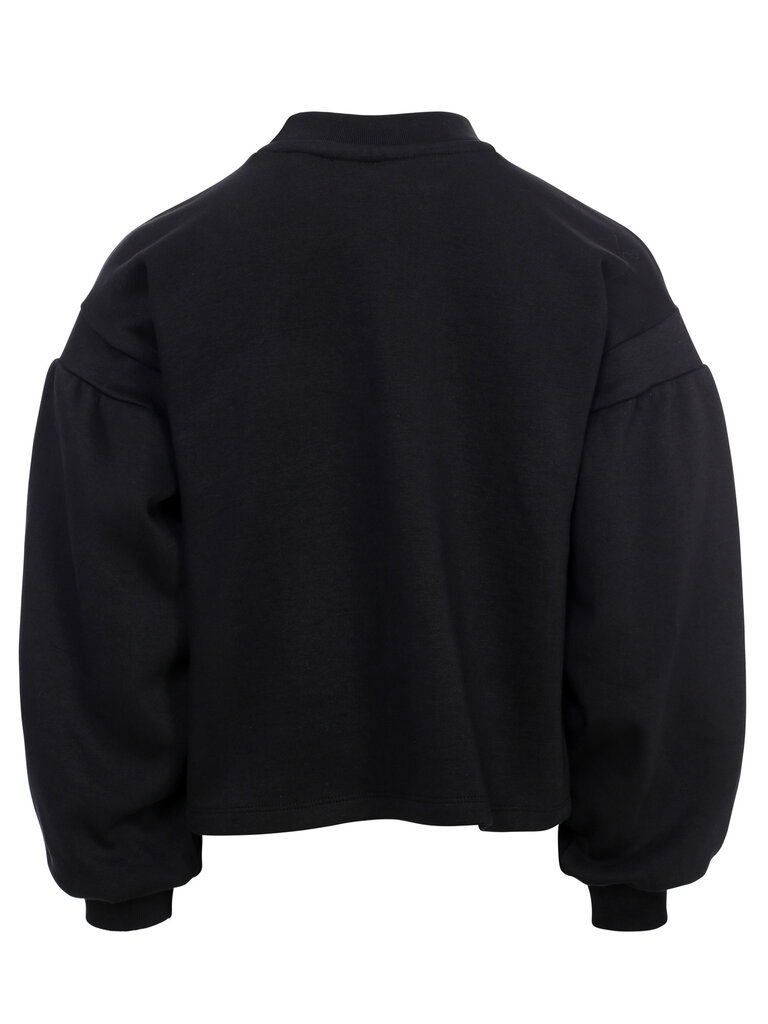 Bloom Baby Bloom! Fancy geborduurde bloem in de kleuren van deze eerste drop van Looxs Little. Super leuke sweater met een fancy mouw en een iets cropped fit. Uni Antraciet kleur. Lange mouw en een ronde hals.