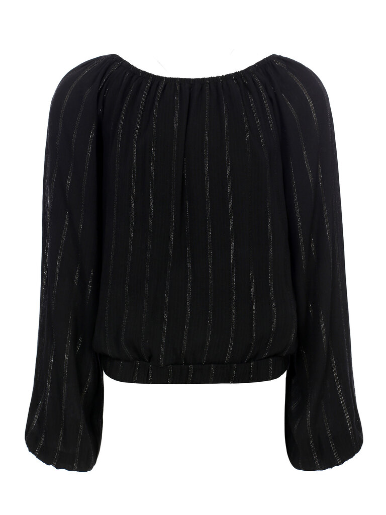 - Feestelijke zwarte top in een mooie viscose stof met een subtiel lurex streepje.