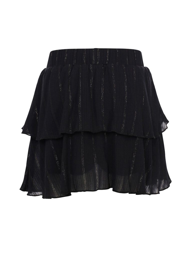 Skort with a party attitude! Nice viscose woven stof met een fijn lurex streepje. Short onder het rokje. Wide fit. Mini lengte.