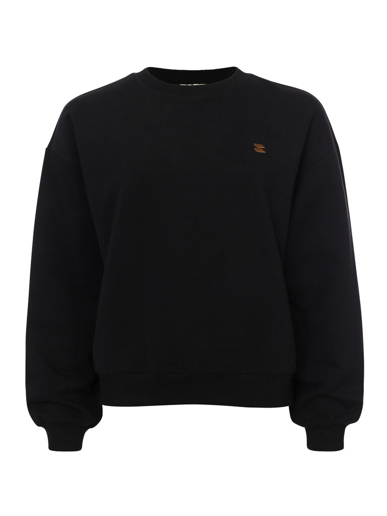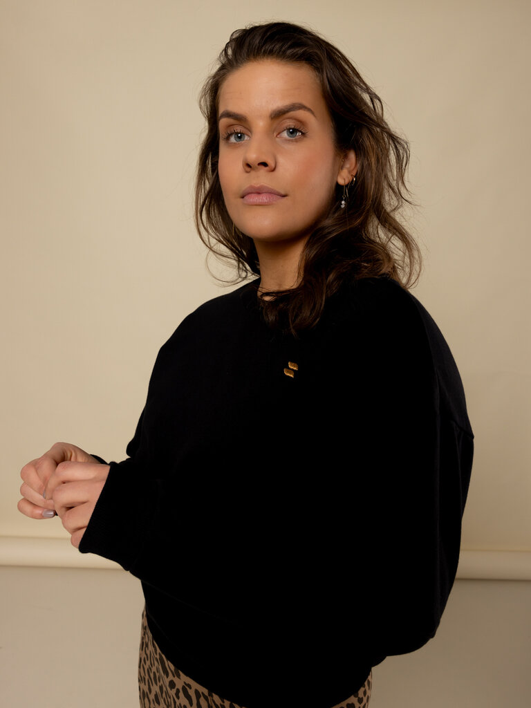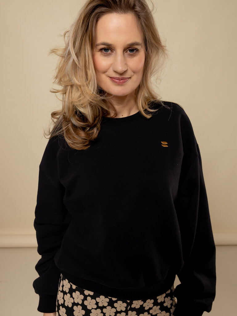 - Uni zwarte katoenen sweater in een mooie interlock kwaliteit.
