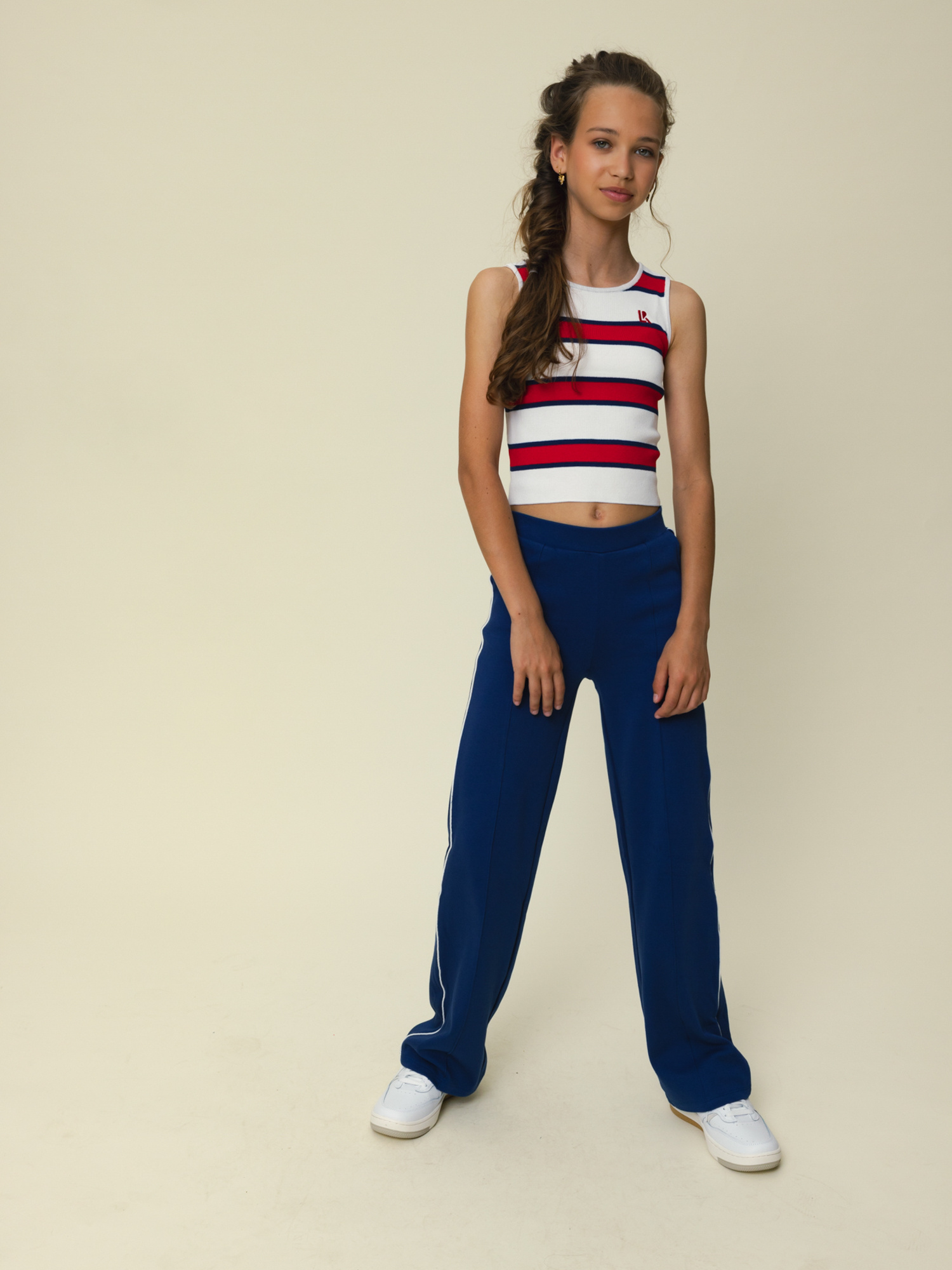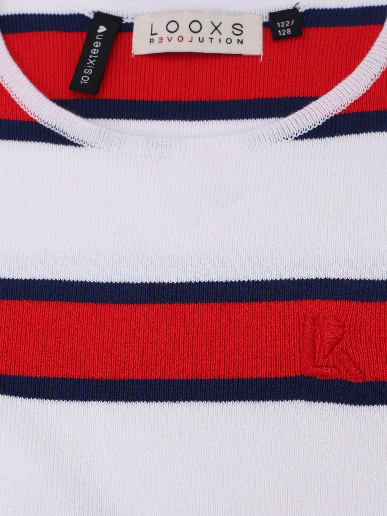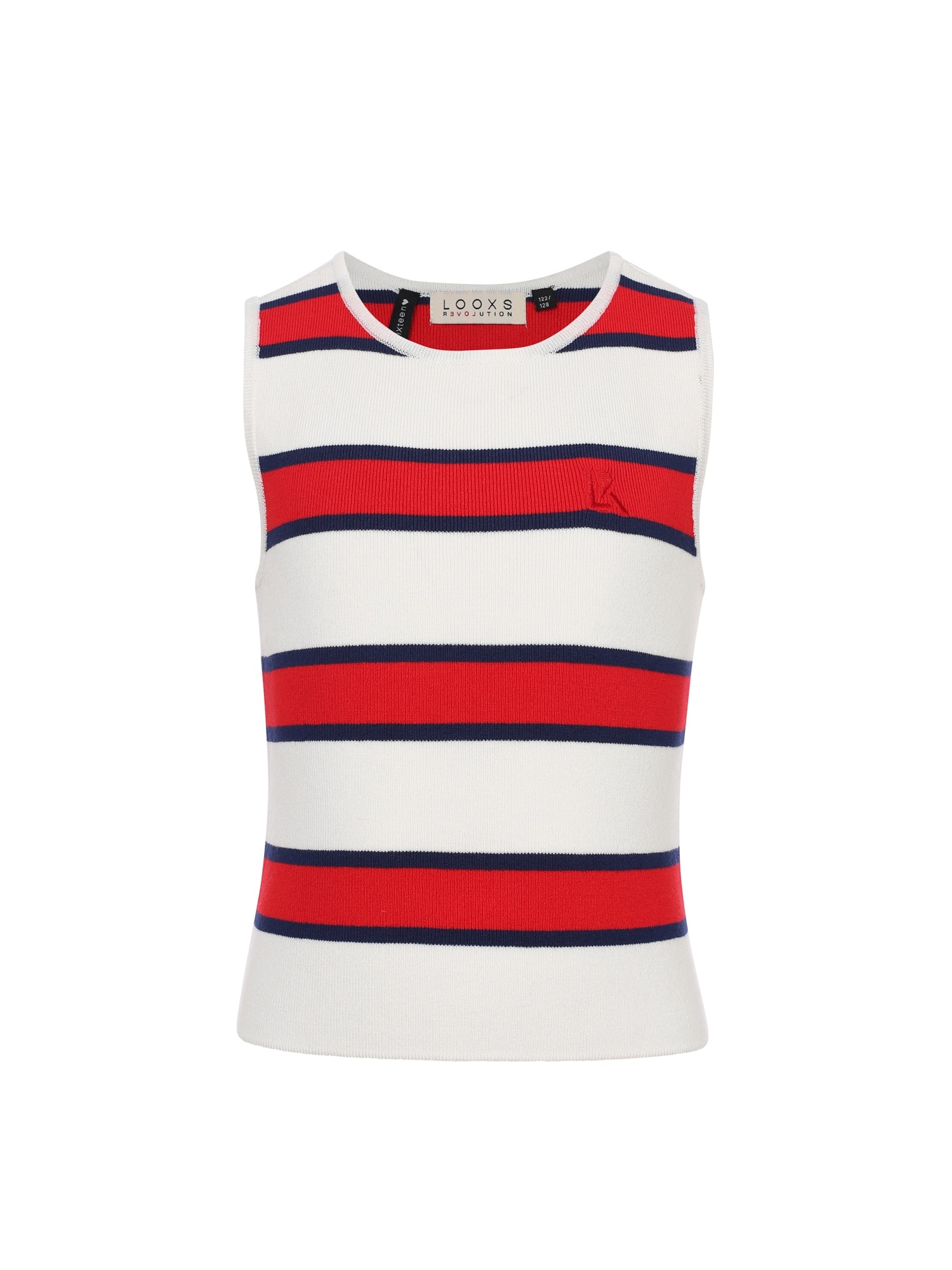- Brede strepen in de rood en fijne strepen in navy op een witte basis.