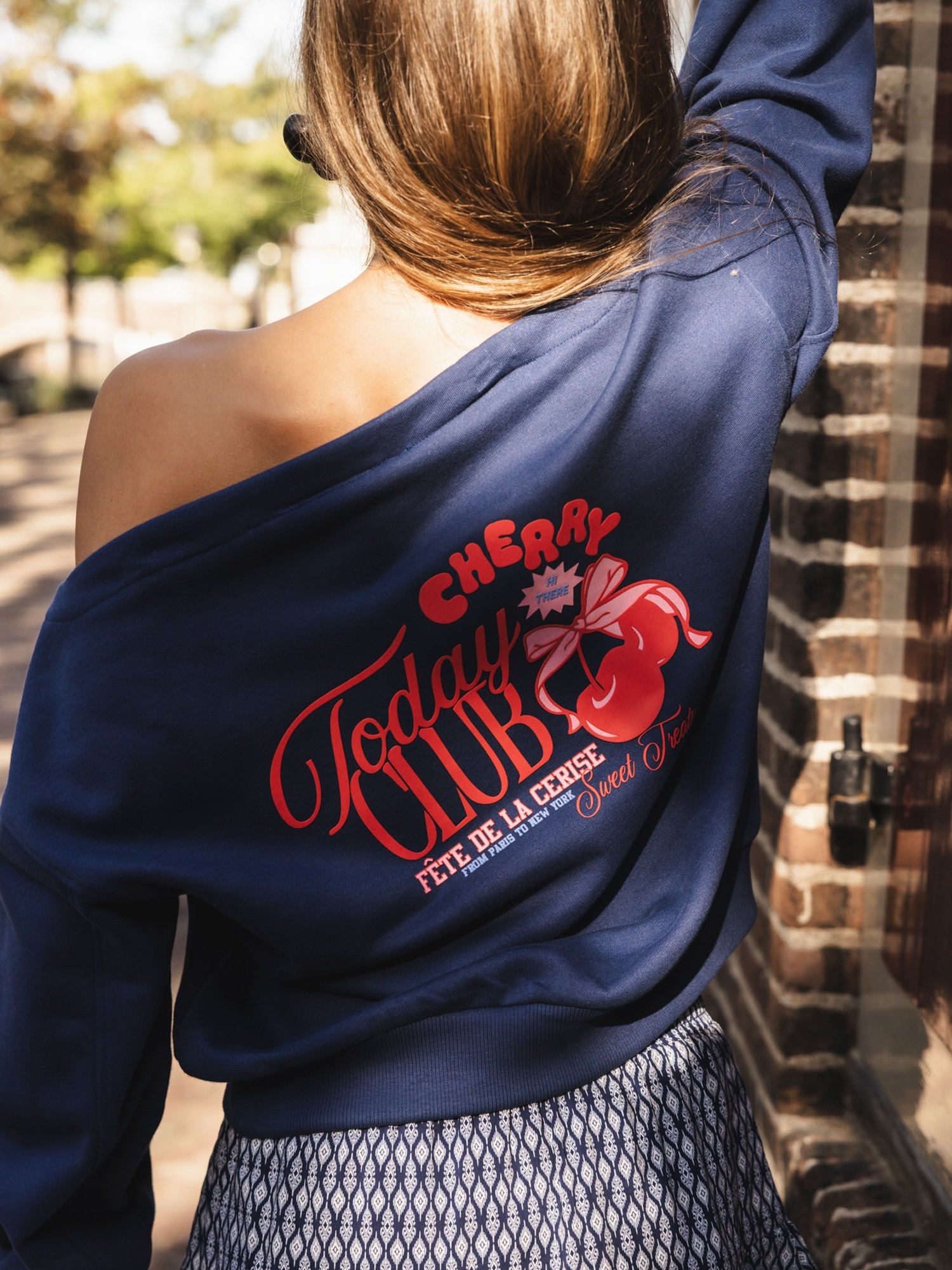 - Uber cool deze katoenen sweater met een mooie boothals, die je ook off shoulder kan dragen.